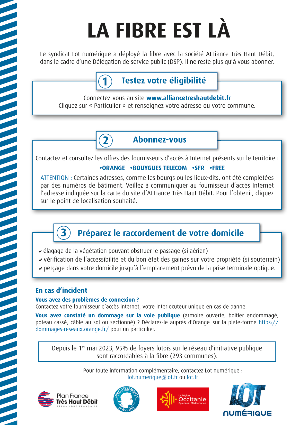 Au 1er mai 2023, 95% des foyers du Lot sont éligibles à la fibre sur le réseau ALL’FIBRE, déployé dans le cadre du contrat de délégation de service public signé en décembre 2017.