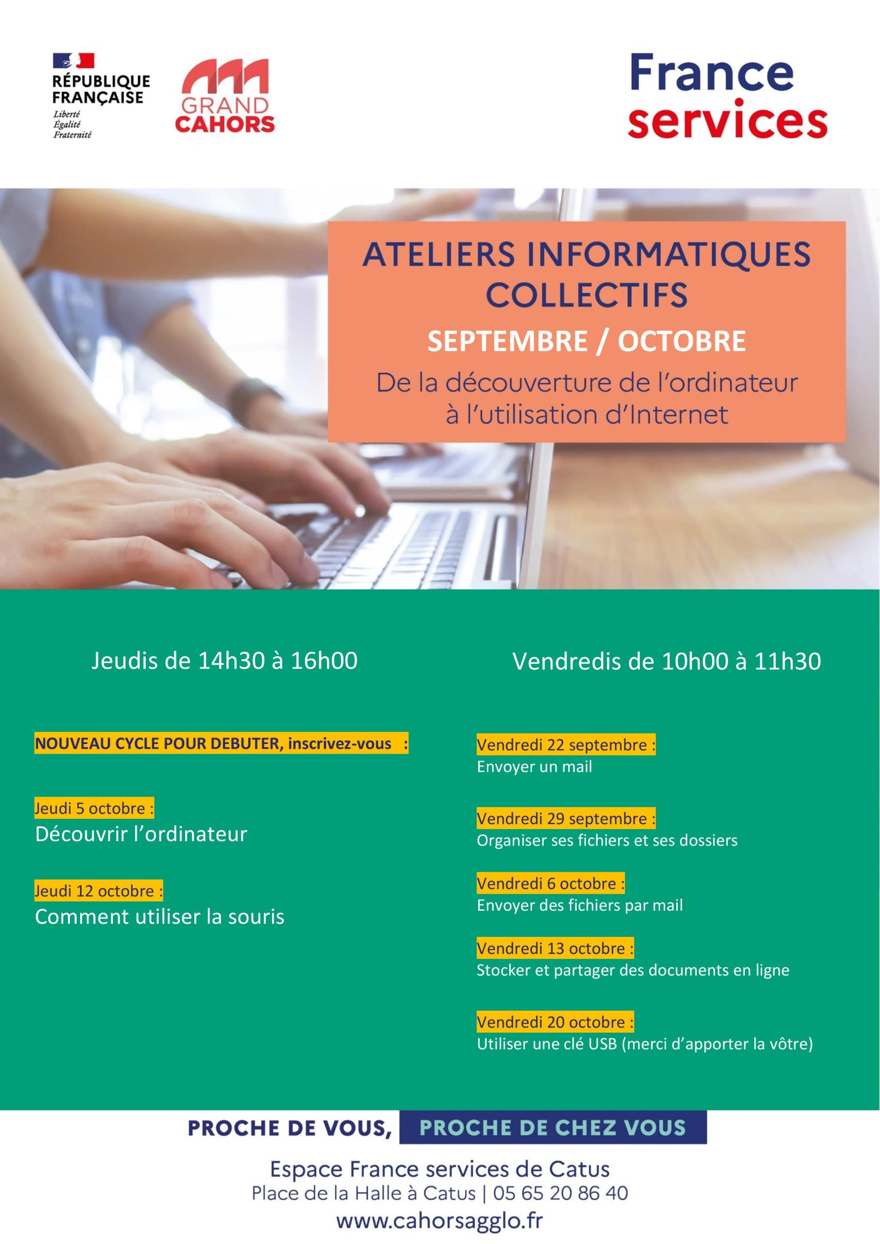 14 Sep Nouveau cycle et reprise des ateliers informatiques Posted at 21:29h in Espace France Services by simon 0 Likes C’est aussi la rentrée pour les ateliers d’informatique avec le début d’un nouveau cycle donc laissez-vous tenter… En plus c’est gratuit et pour tous les âges 😉